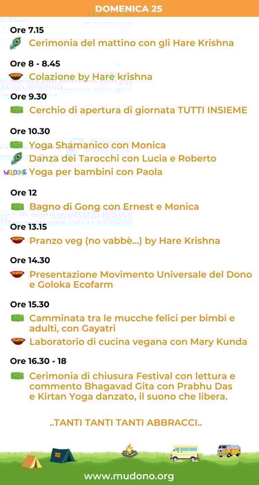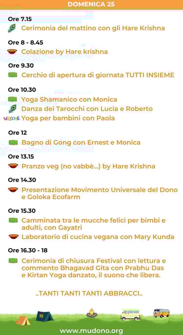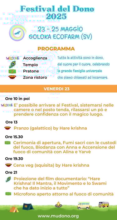 Ecco il programma del primo Festival 2025! Vi aspettiamo dal 23 al 25 Maggio presso Goloka Ecofarm!