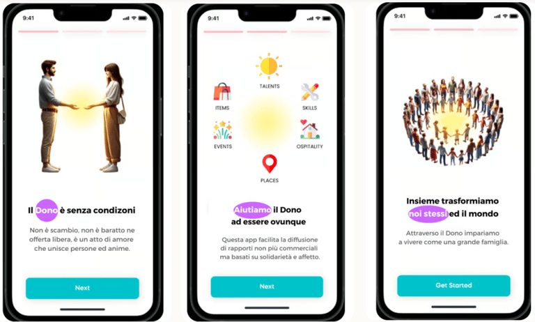 Sostenendo l'App del Dono, non stai solo supportando un'applicazione; stai dando vita ad un movimento che vuole riportare la sacralità del dono autentico nelle nostre vite quotidiane. In un'epoca in cui le interazioni spesso si riducono a transazioni, l'App del Dono offre un'alternativa significativa, promuovendo connessioni umane basate sulla e sull'amore e sulla libera condivisione.